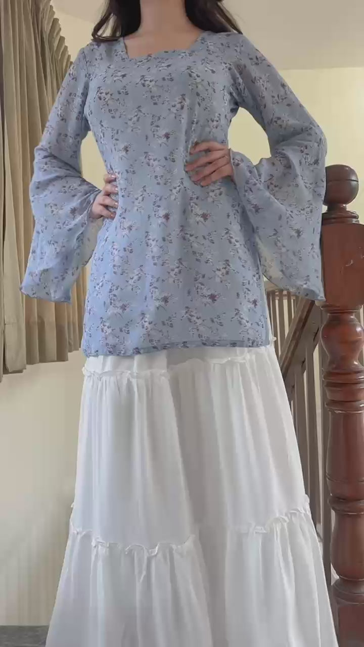 Meet Lavender Mist — a kurti woven with daydreams. Draped in a soft powder-blue hue, it’s kissed with lavender leaves in shades of purple and white, creating a delicate dance of colors across its flow.